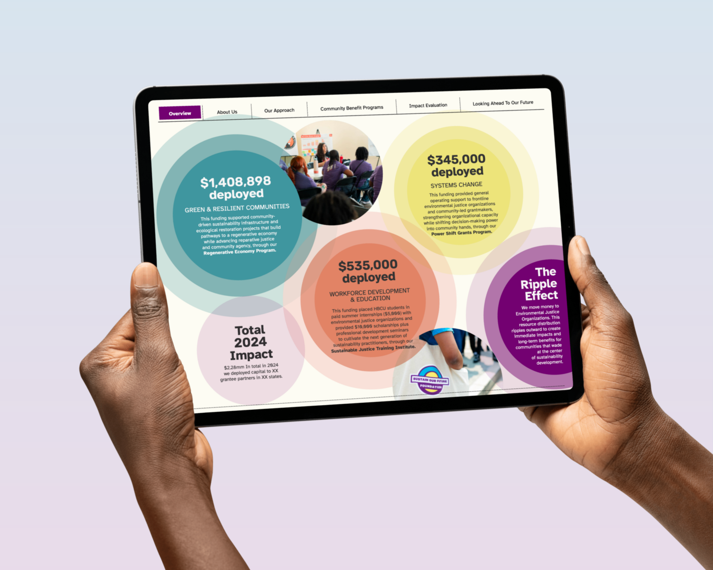 A digital product to transparently showcase the flow of capital across Sustain Our Future’s ecosystem of corporate developers, funders, and grantees.
